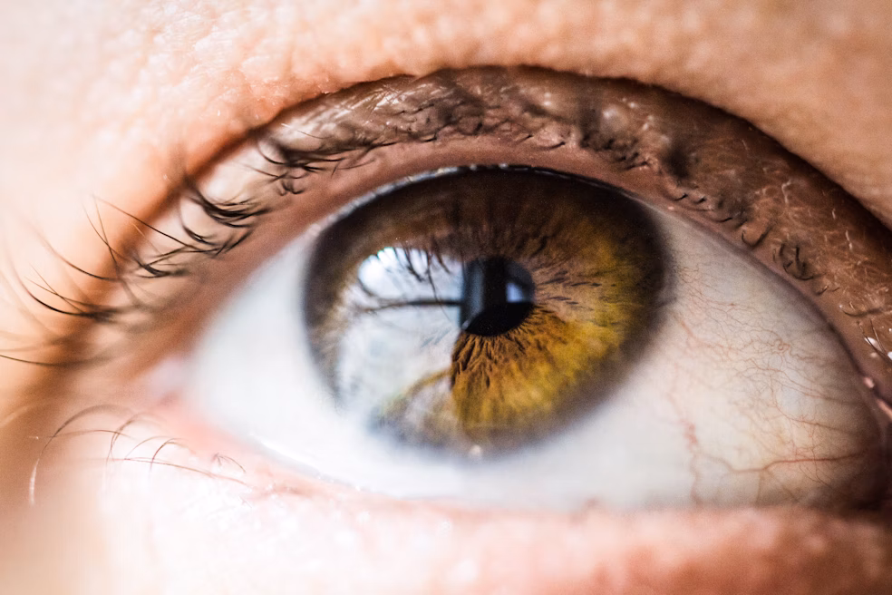 Die Hornhaut: Dies ist der klare, durchsichtige Teil vorne am Auge, der wie das Objektiv einer Kamera wirkt, durch den das Licht eintritt.